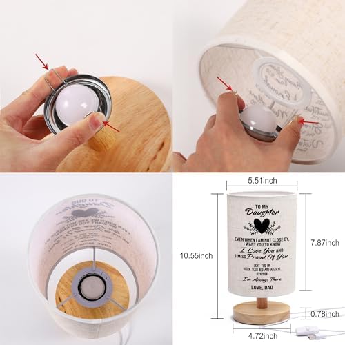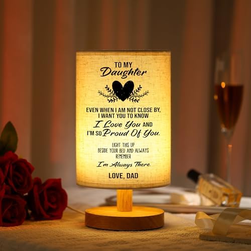 The WSYEAR Birthday Gifts for Daughter from Dad Table Lamp is a heartfelt gift from fathers to daughters, perfect for Daughters’ Day, birthdays, graduations, or Christmas. This minimalist lamp features a sturdy wooden base and a white lampshade with a touching message, expressing a father’s love, pride, and constant support.